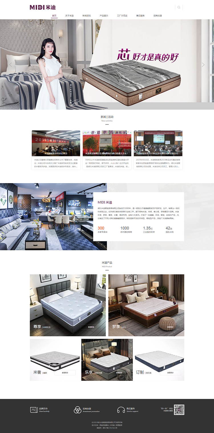 湖北米迪智能家具有限公司始创于2000年,是一家致力于健康睡眠系列产品研发、生产、销售为一体的科技型企业,位列湖北省软体家具行业前三甲,旗下拥有米迪、帅虎、香兰阁、菲格曼四个品牌。公司秉承“思变图强,永不止步”的企业精神,践行“关爱家庭,为全民健康智能家居服务”的企业使命,与国内外睡眠研发机构、科研院所精诚合作,产品持续升级,形成了米迪乐享、梦享、尊享、米奢、酒店专用、定制六大系列。打造了一批健康、环保、智能、经典的产品,充分满足了各类不同人群的健康睡眠要求,特别是新开发的环保型、智能型产品,深受广大消费者的青睐。