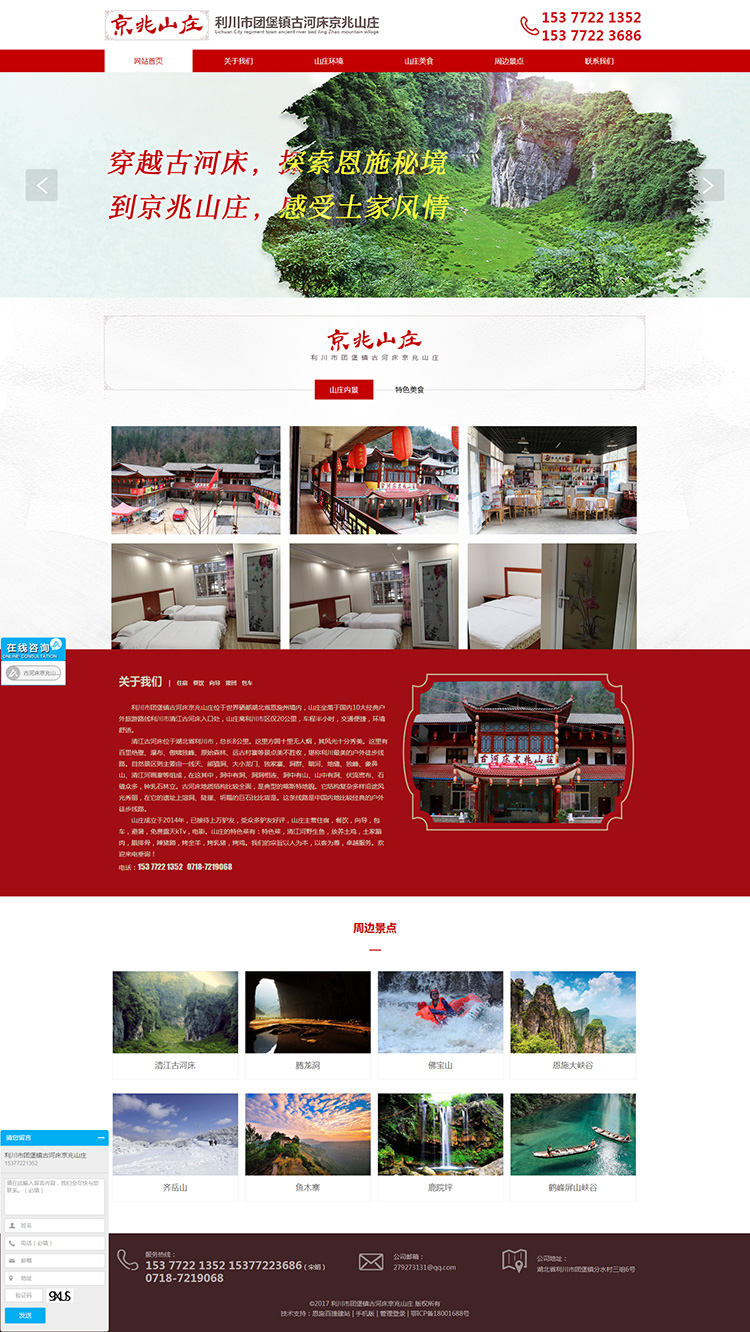 利川市团堡镇古河床京兆山庄位于世界硒都湖北省恩施州境内,山庄坐落于国内10大经典户外旅游路线利川市清江古河床入口处,这条线路是中国内地比较经典的户外徒步线路。山庄离利川市区仅20公里,车程半小时,交通便捷,环境舒适。