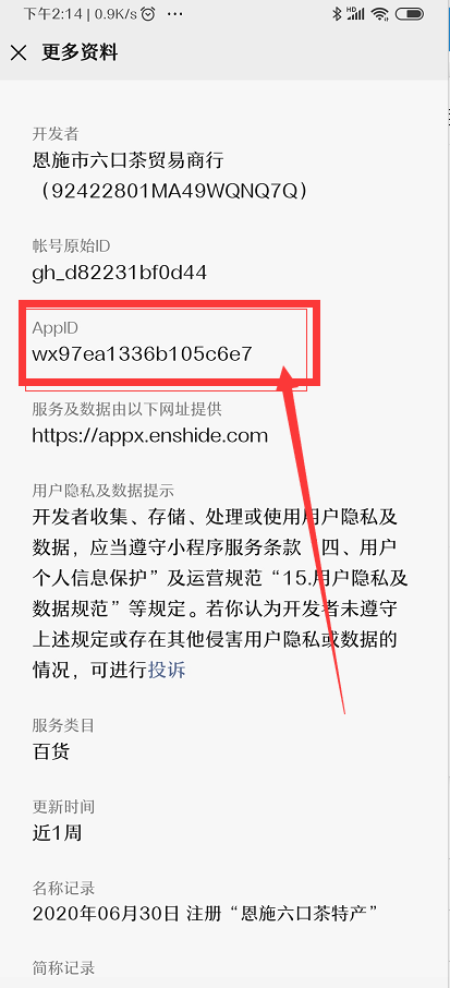 5.就能看到别人这个微信小程序的appid了