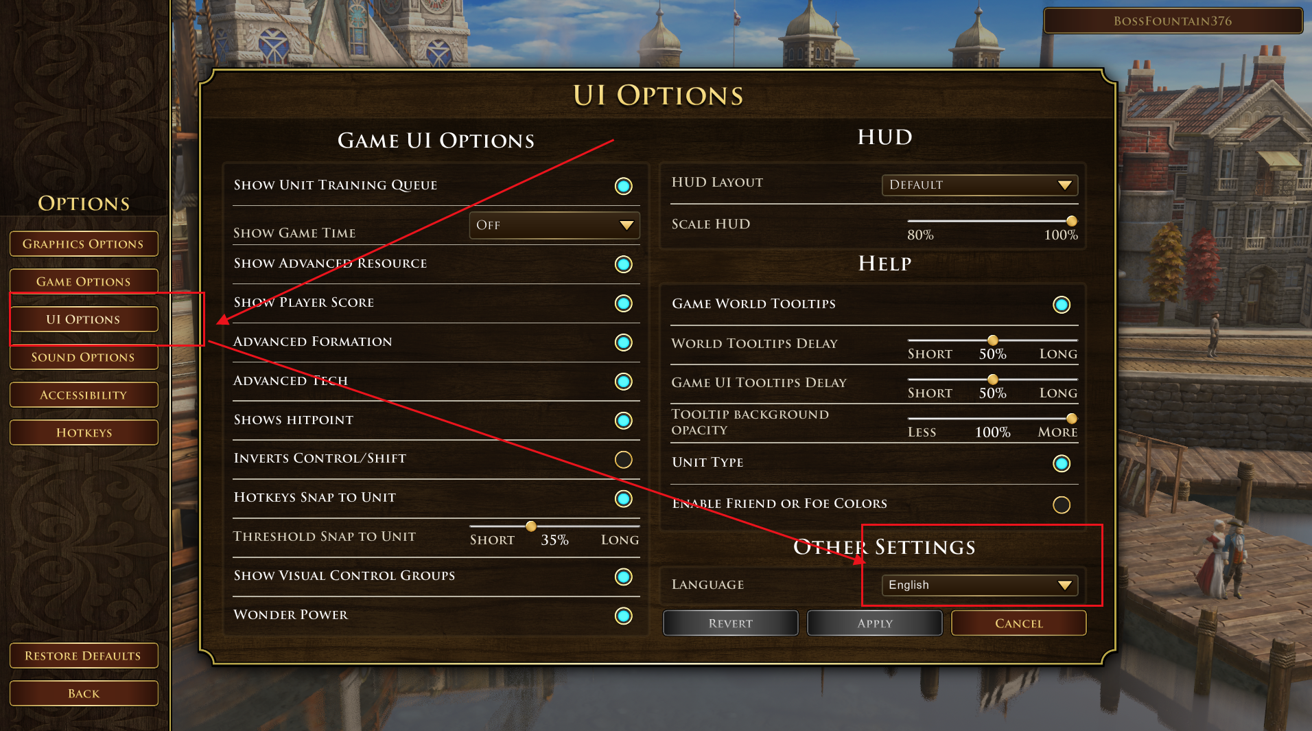 好多新手或英文不好的玩家不会改语言,这里截图教大家改