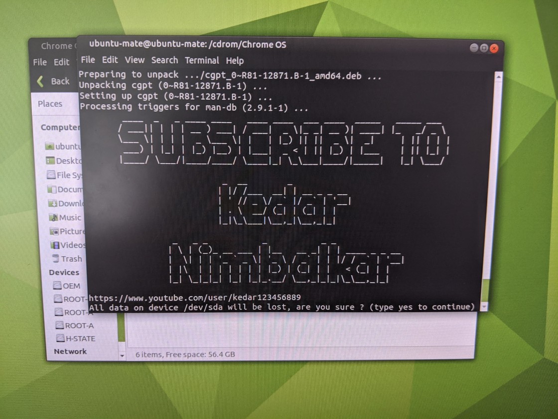 sudo apt-get update sudo apt-get install figlet sudo apt-get install pv sudo apt-get install cgpt sudo bash chromeos-install.sh -src rammus_recovery.bin -dst /dev/sda