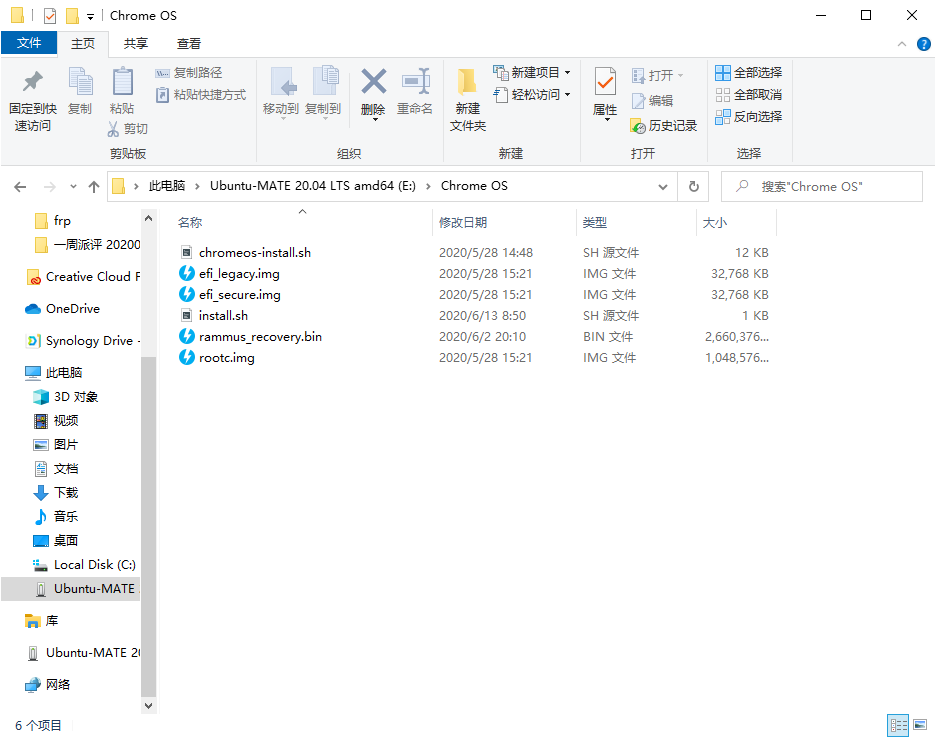 最后将保存的 install.sh文件拷贝到 U 盘的 Chrome OS 文件夹中。至此需要准备的文件就全部完成了。
