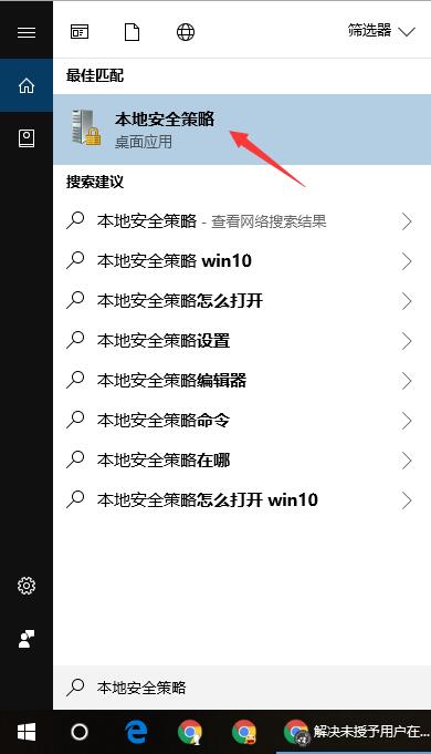 首先,点击 微软小娜 Cortana 输入 本地安全策略,点击打开 本地安全策略 设置。