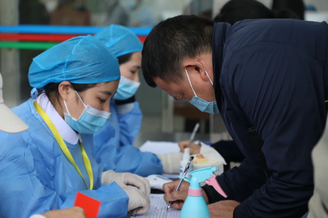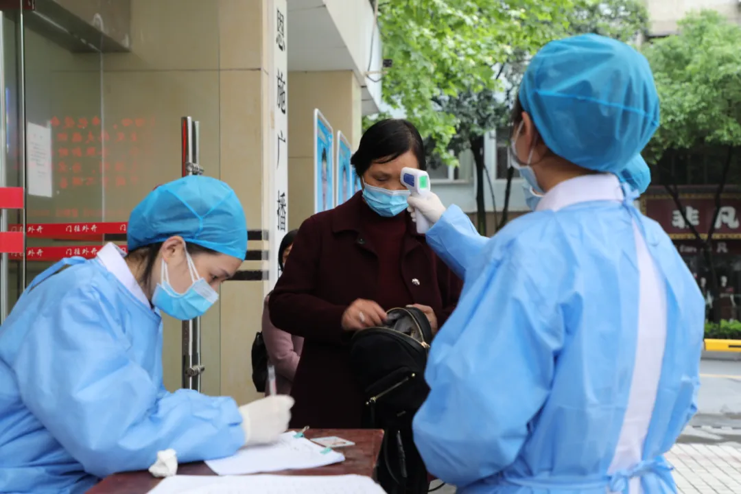 医护人员按照疫情防控要求给患者们登记并测量体温